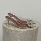 - Amina Muaddi Begum slingback pumps in transparent PVC, embellished with the iconic crystal brooch, pointed toe, and a 95 mm stiletto heel.