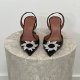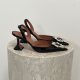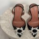At the heart of the design lies the instantly recognizable crystal-embellished brooch — a signature Amina Muaddi touch inspired by the radiant geometry of Art Deco sunburst mirrors. This sparkling detail transforms the pumps into a true statement piece, radiating refined opulence with every movement.