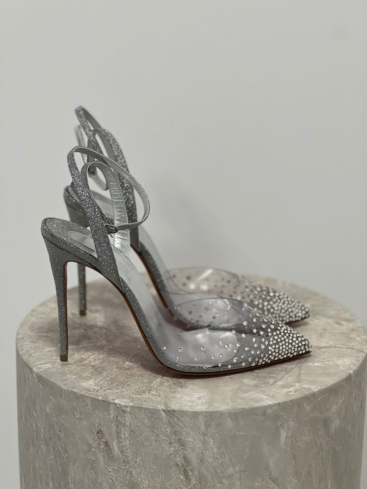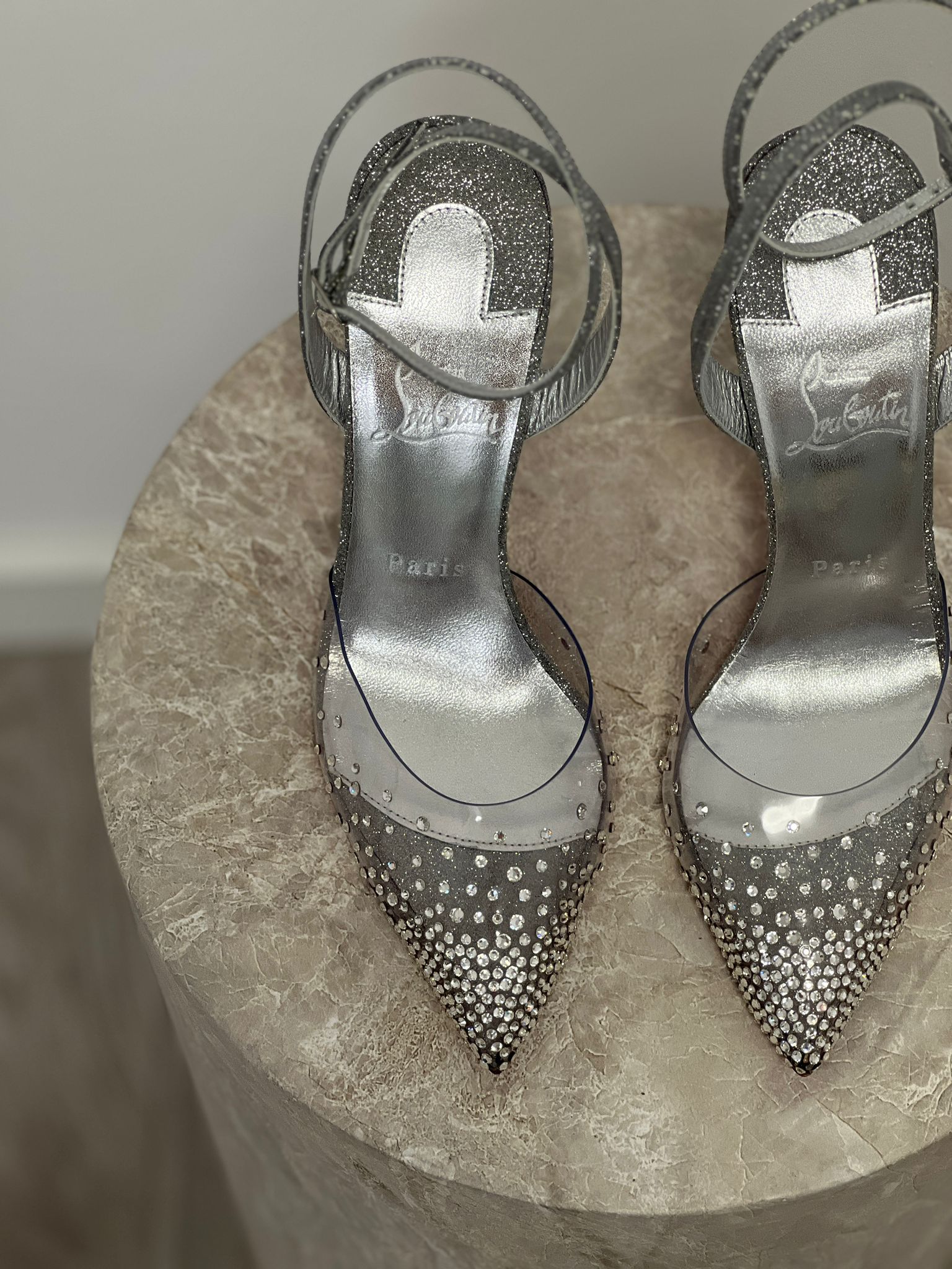 CHRISTIAN LOUBOUTIN Spikaqueen 100 glitter pumps crystals embelished PVC