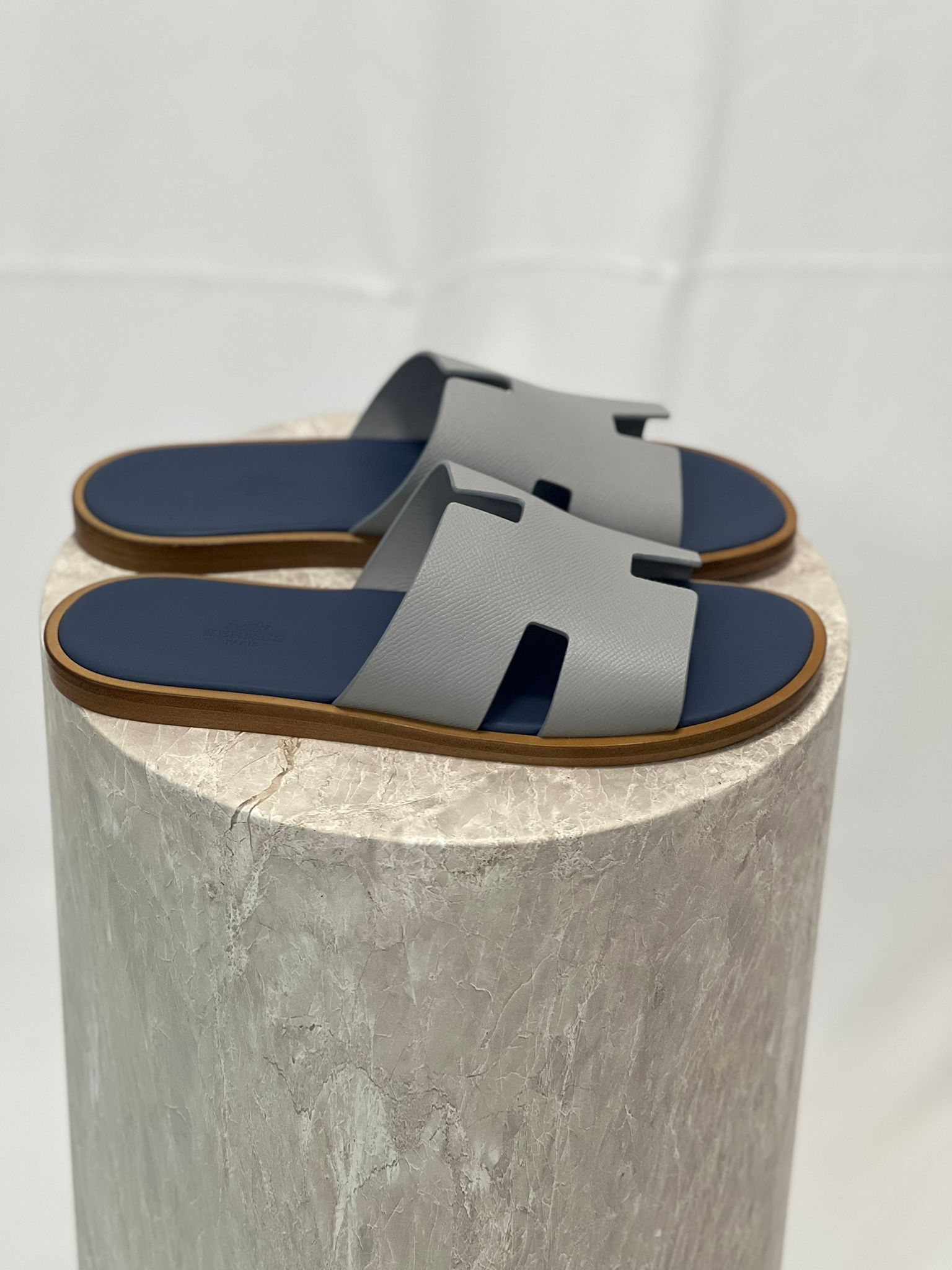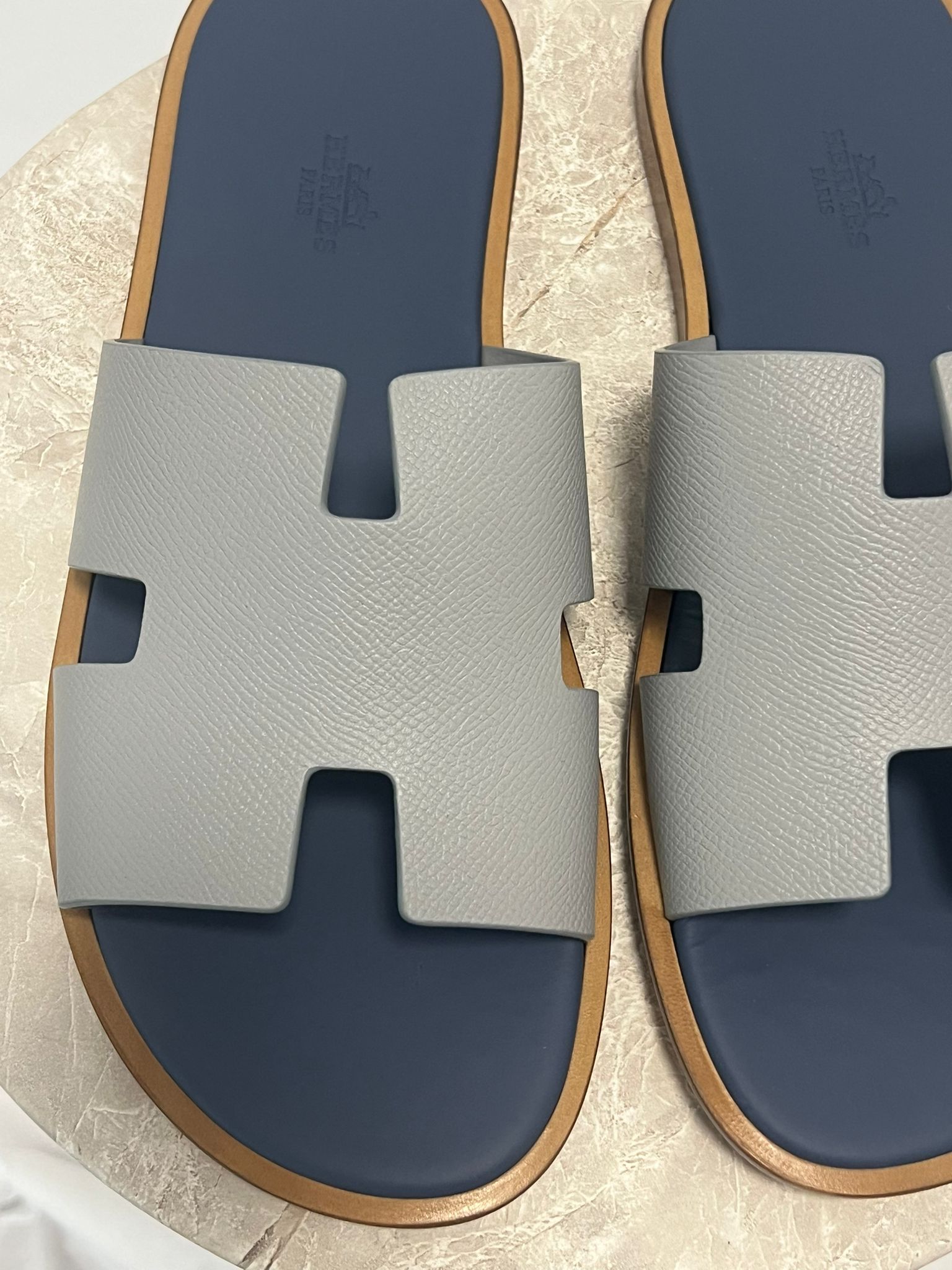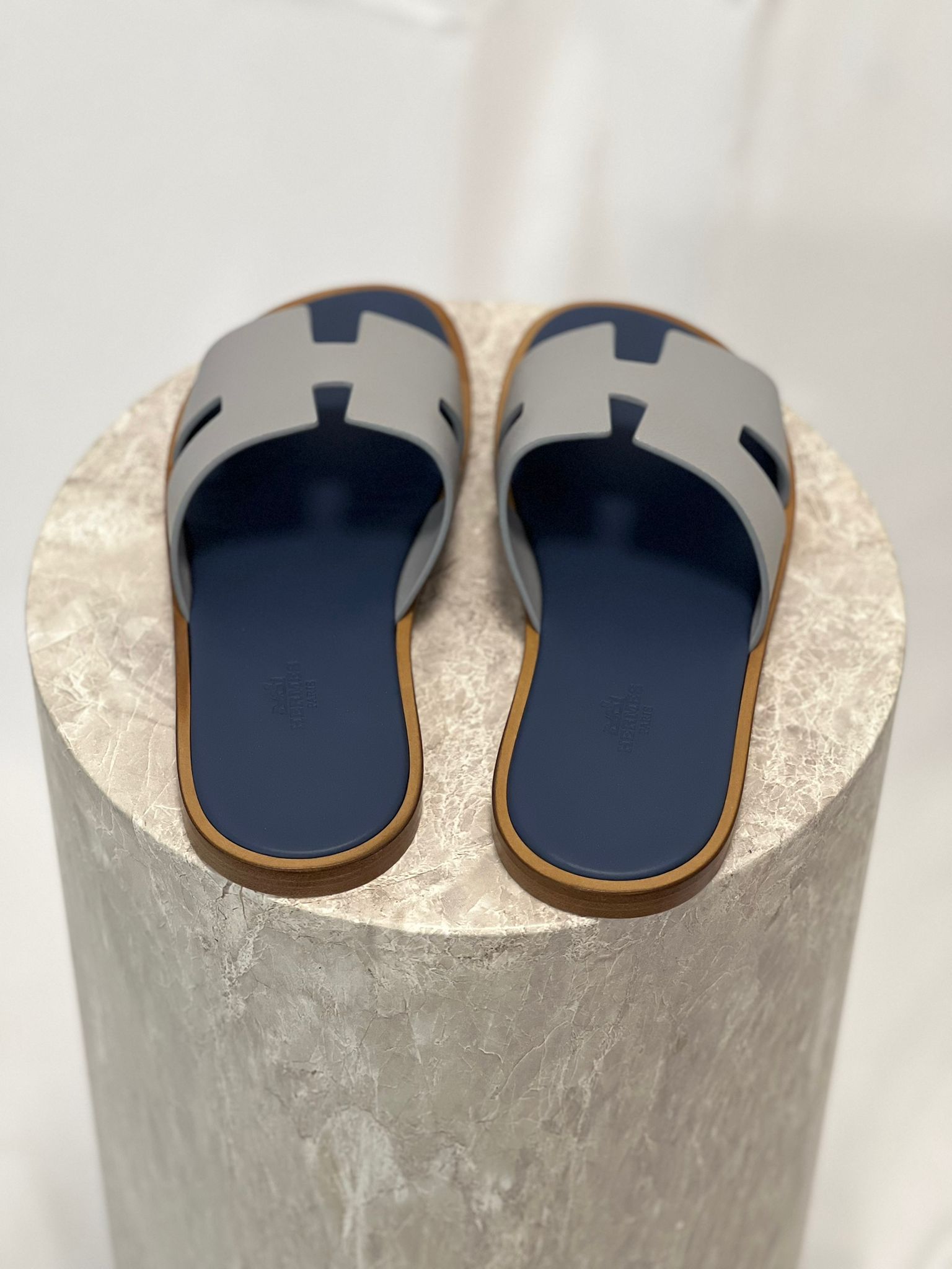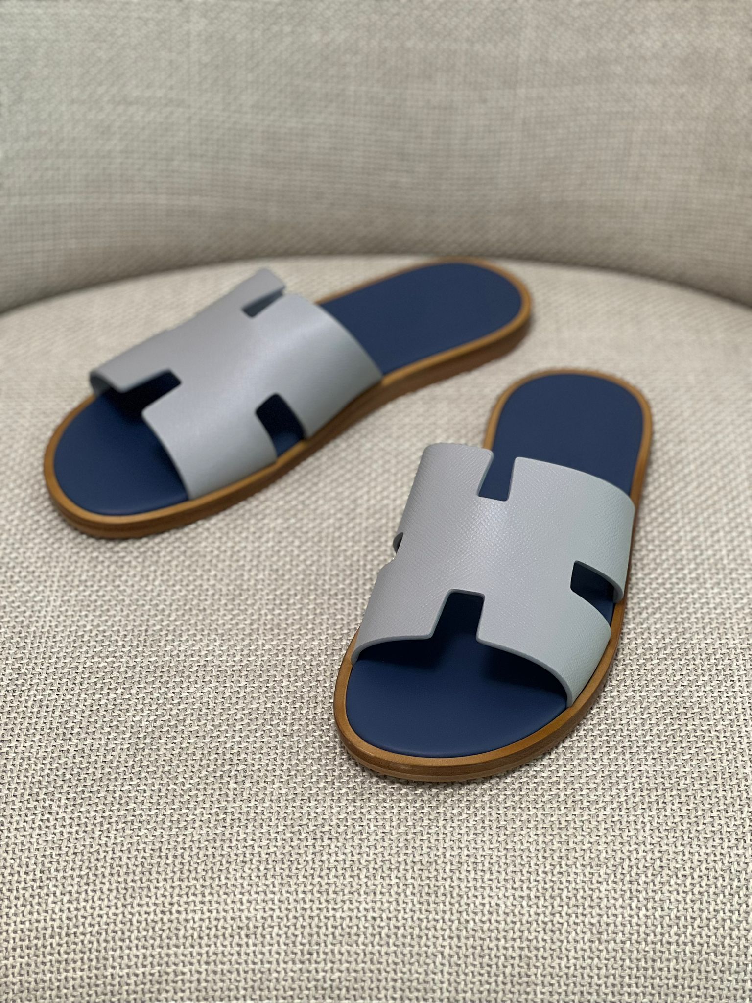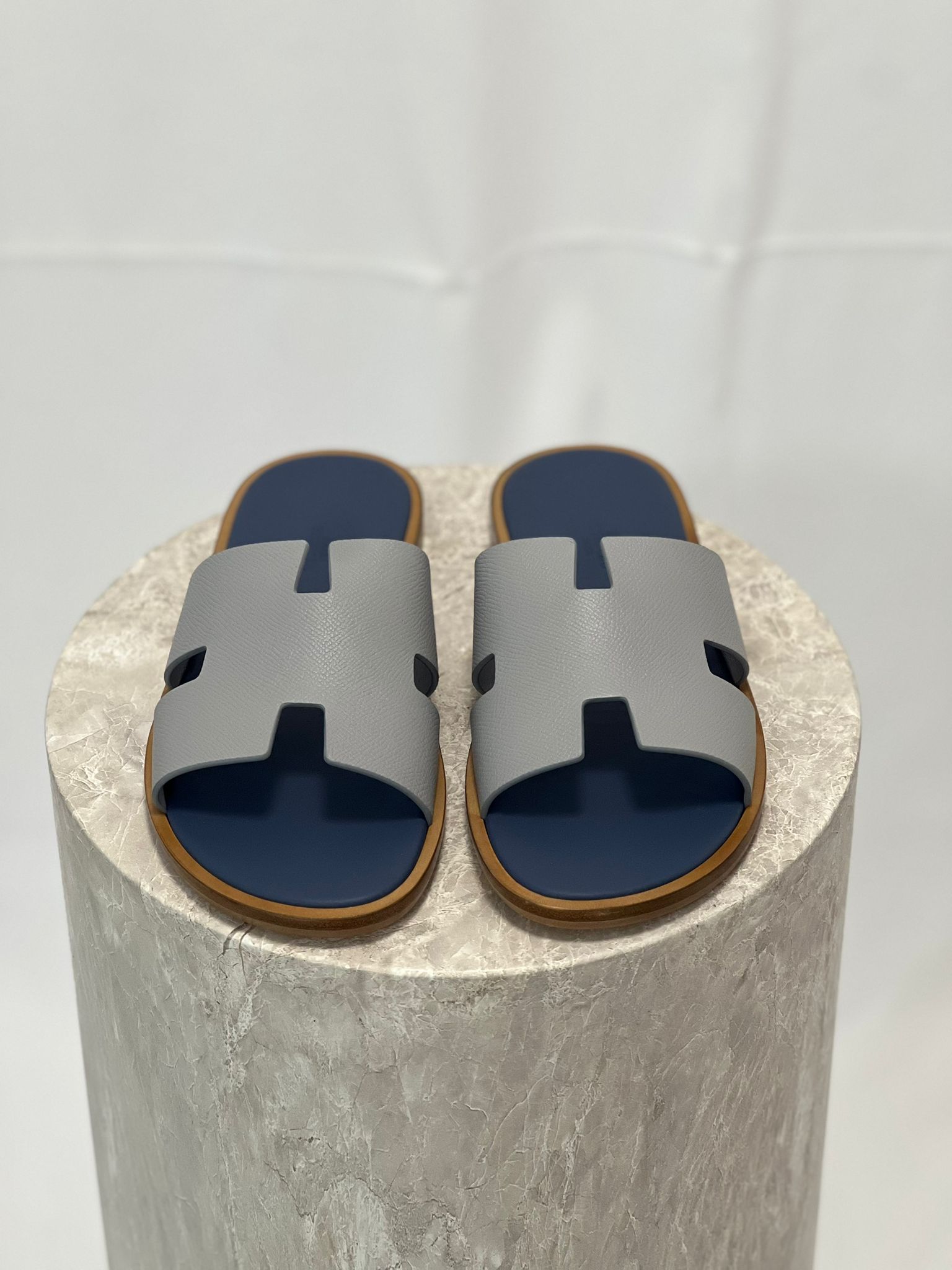 - Crafted in smooth leather with the signature “H” cut-out, the Hermès Izmir sandals combine timeless elegance with everyday comfort.