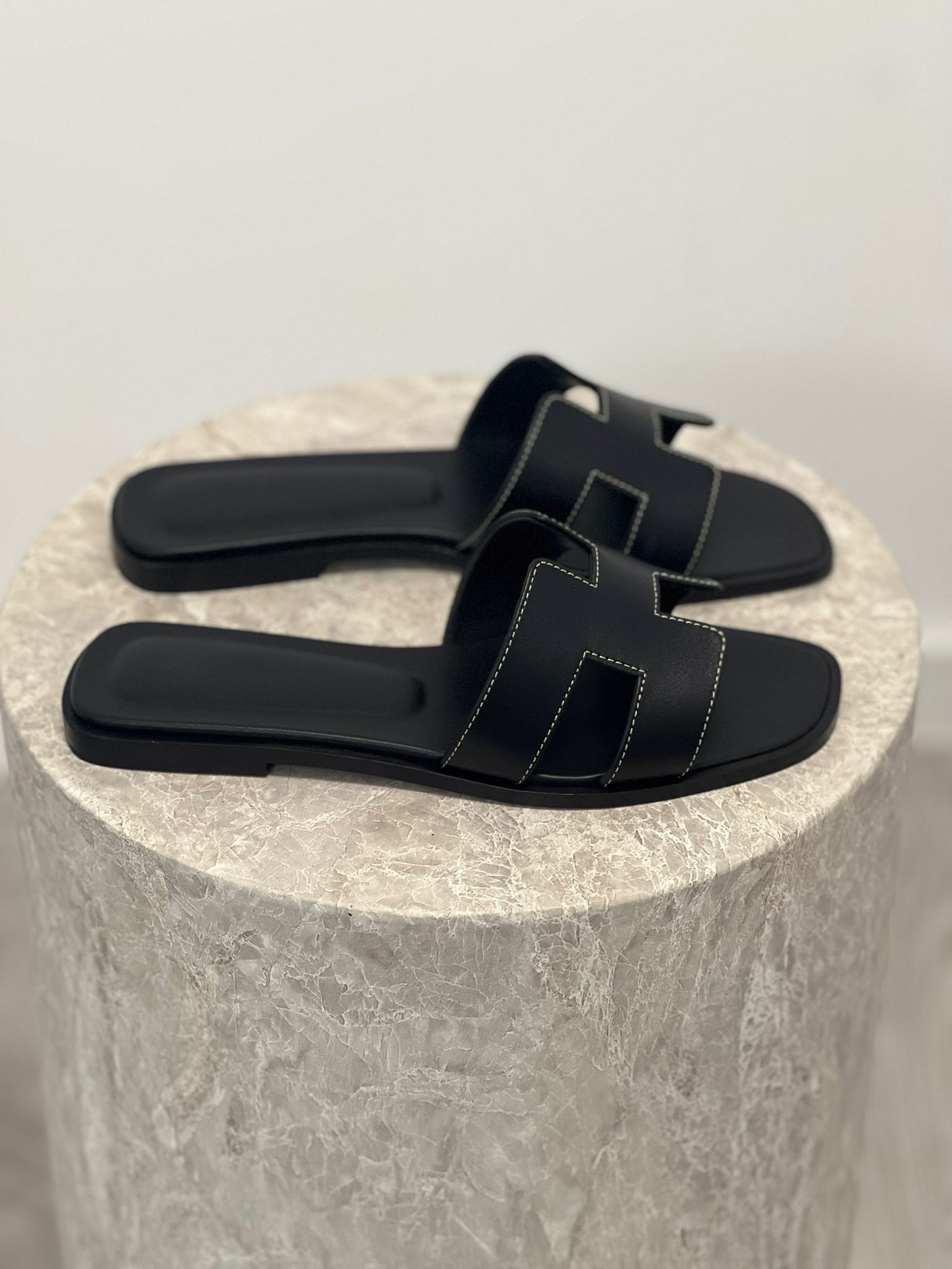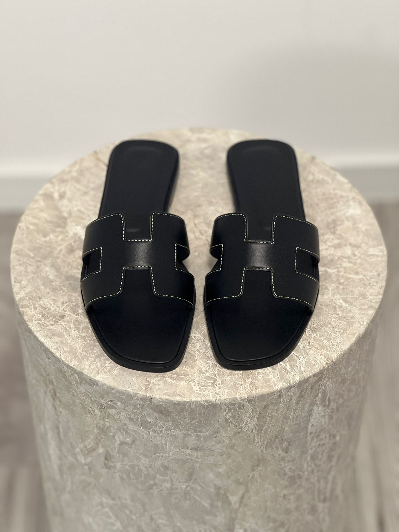 - Hermes H cut leather slides