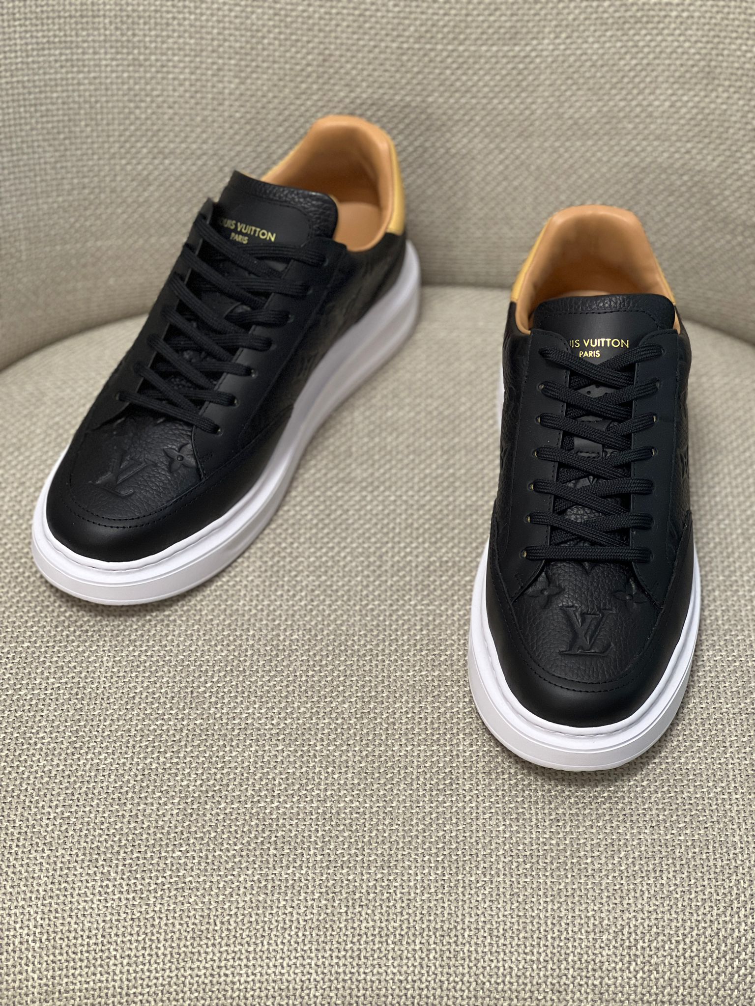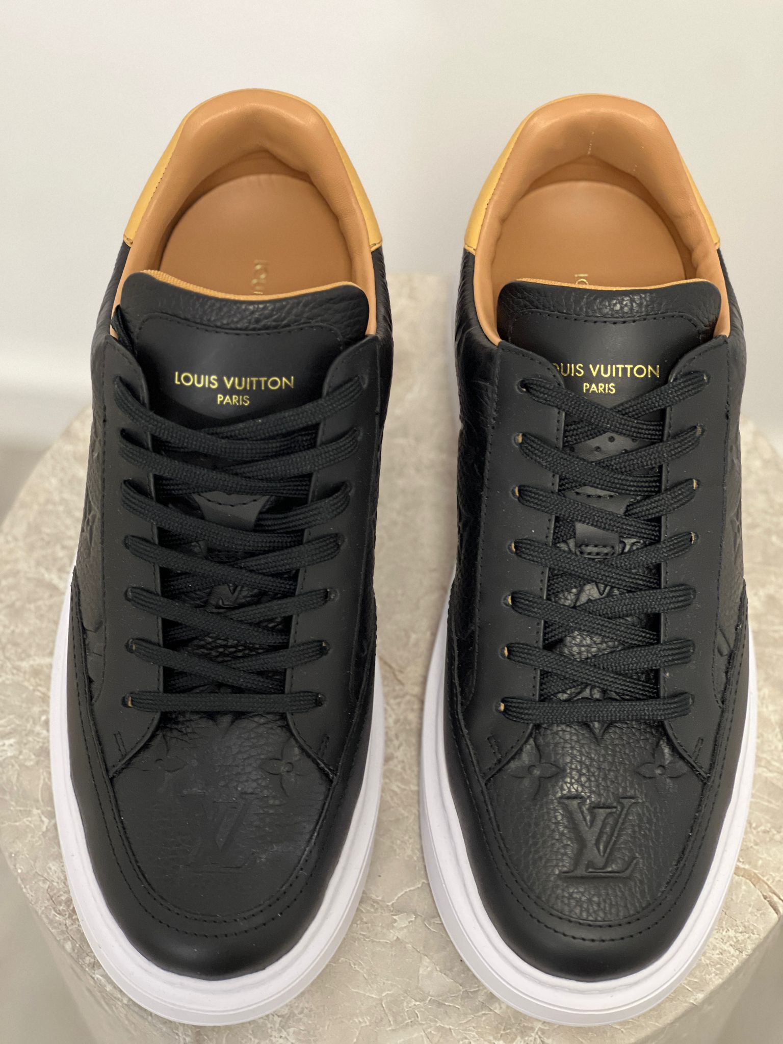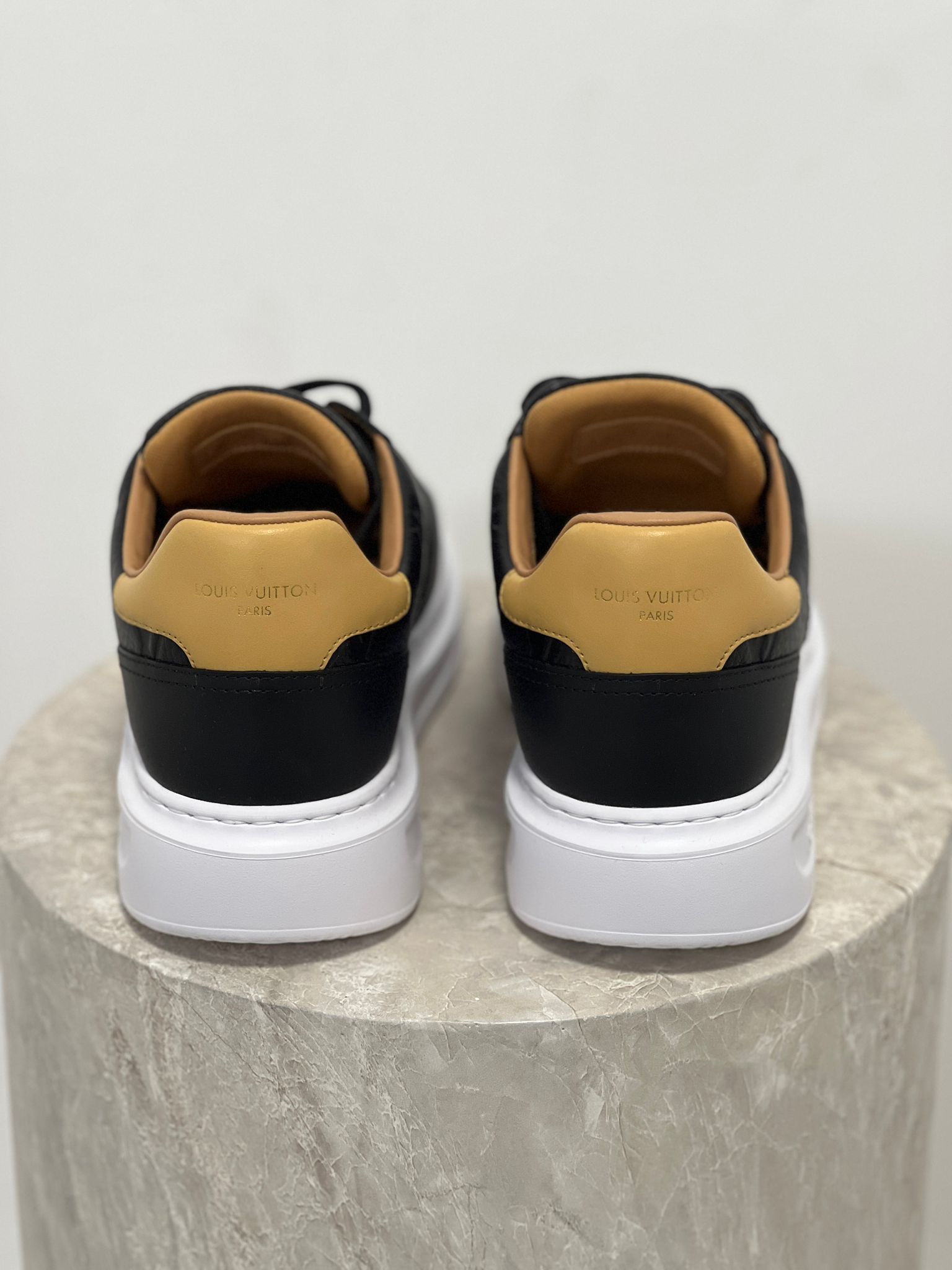 • Gold-stamped Louis Vuitton Paris logo on the tongue