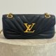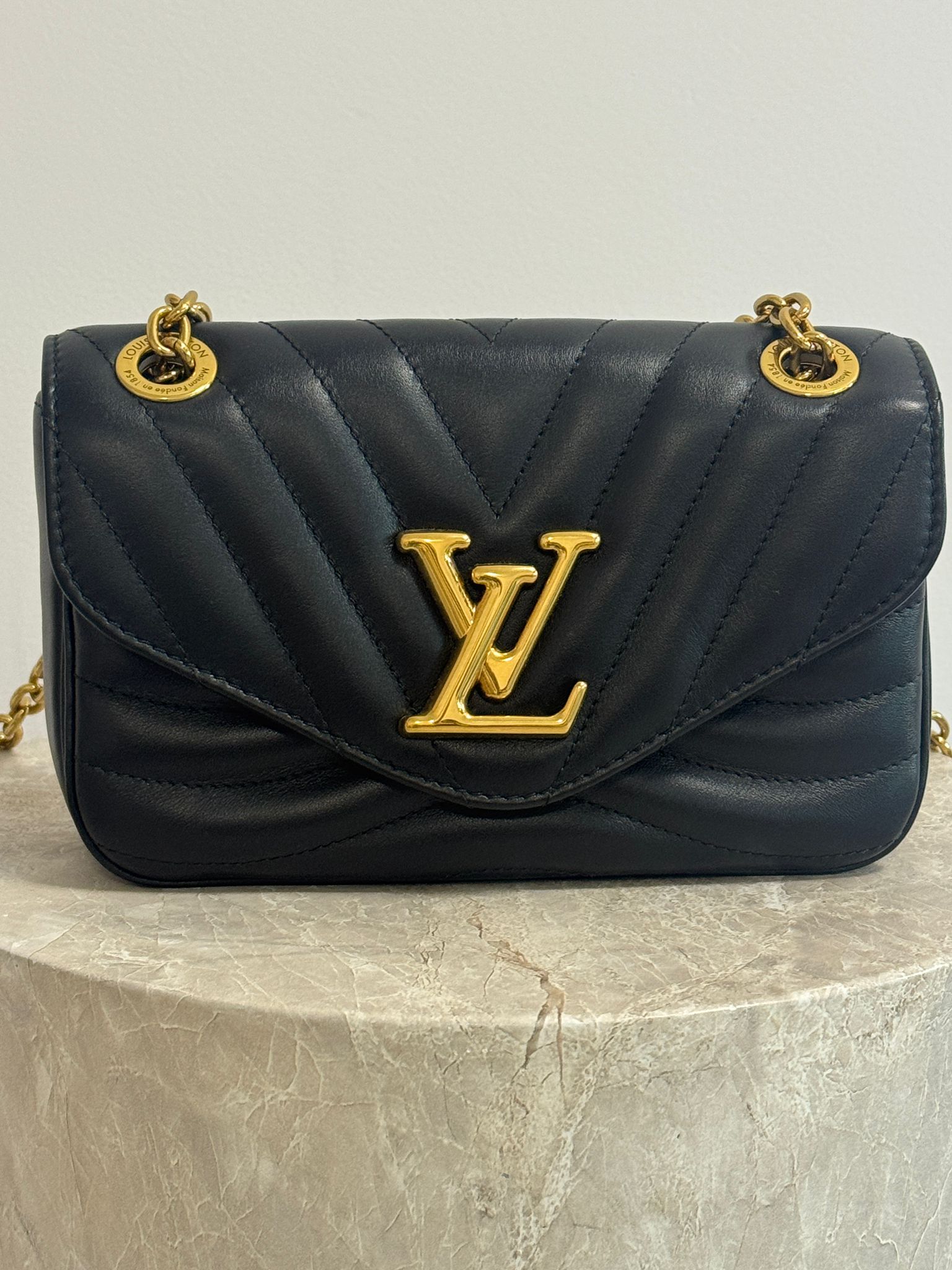 - Louis Vuitton New Wave Chain Bag,crafted from soft quilted calfskin leather with the signature wave stitching and vintage gold LV logo on the front.